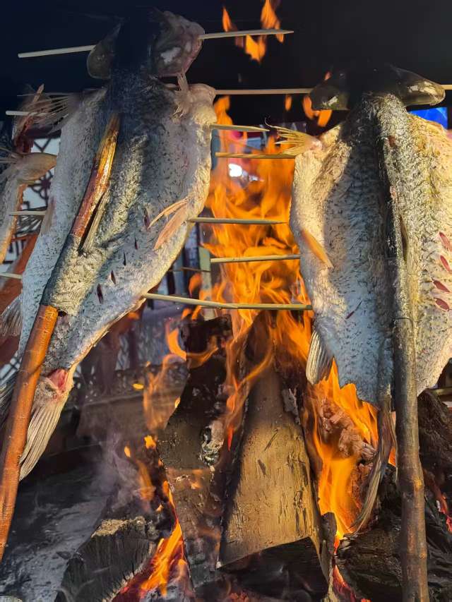 烤鱼在火上滋滋作响,香气扑鼻,一定很好吃!