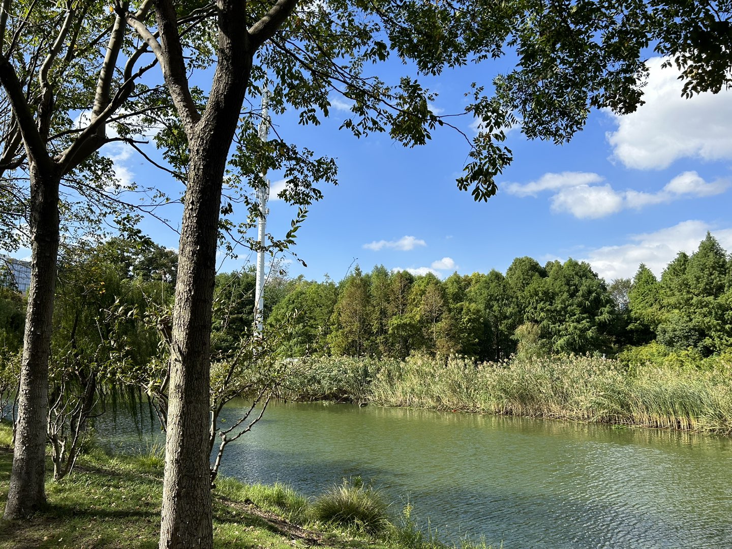 在这个上游有个荷花池,钓鱼人可多了。