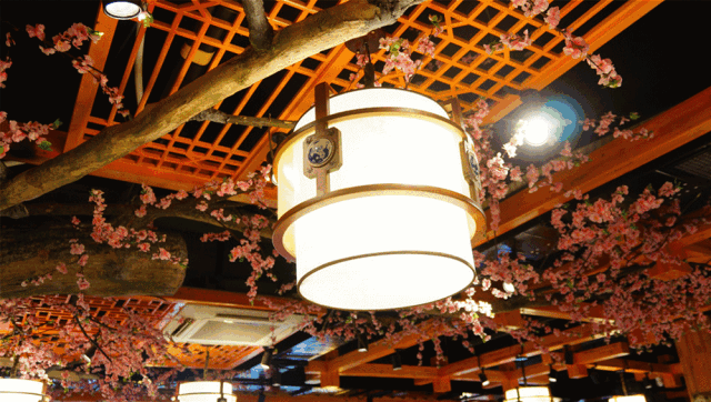 高高挂起的灯笼、本木色的桌椅,将中国传统文化元素融入现代美食中,带来如诗如画的优雅格调。
