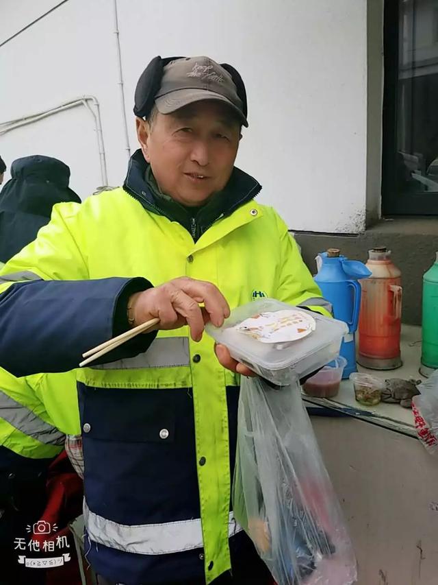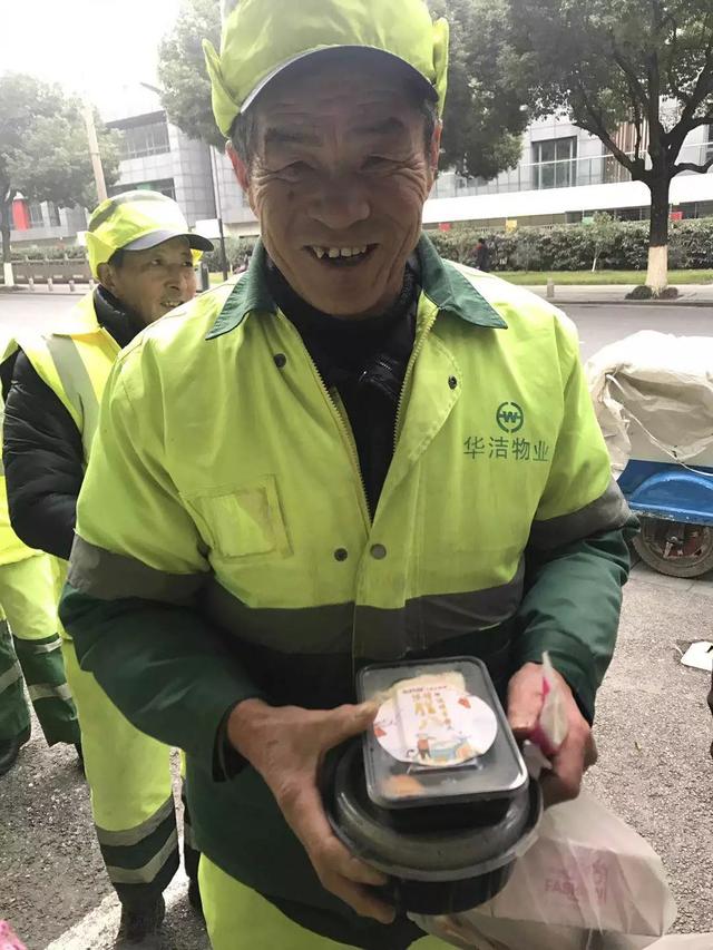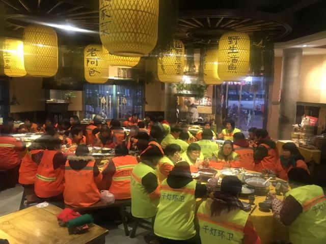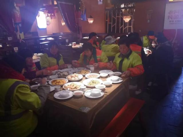 老阿爸千灯店邀请附近环卫工人来店里过腊八节