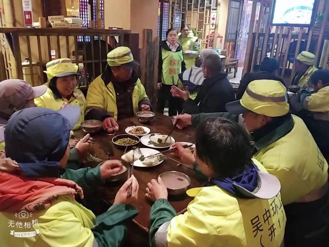 老阿爸吴中店邀请附近环卫工人来店里过腊八节