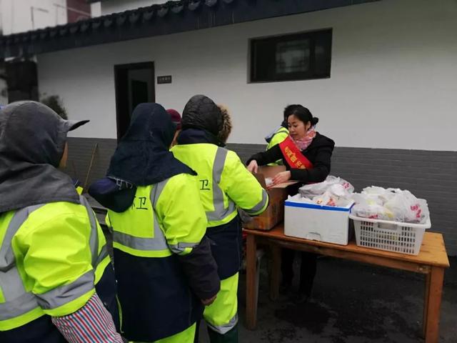 老阿爸汾湖店给附近环卫工人派发腊八粥与礼品