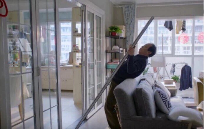 再说一下一些缺点啊,吊轨缺点还是比较多的,第一个就是说他安装的要求比较高,因为这个吊轨必须完全的水平,要求水平度比较高,如果说出现这种不平衡的话,他可能会向同一个方向滑动,这个是非常危险的。就像电视剧(都挺好)中苏明成家里的厨房推拉门一样,会掉下来的!