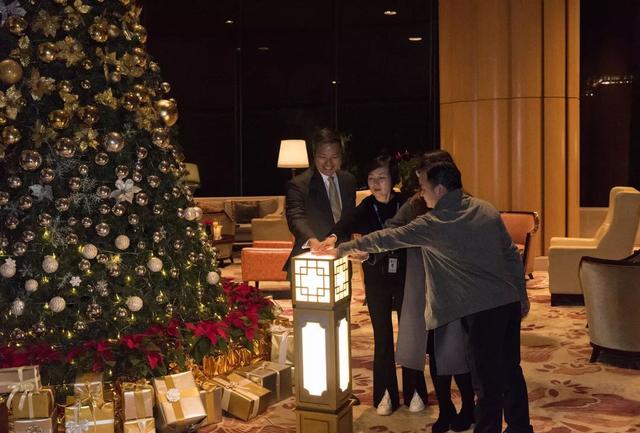 总经理洪园先生与特邀嘉宾一同启动灯柱点亮圣诞树