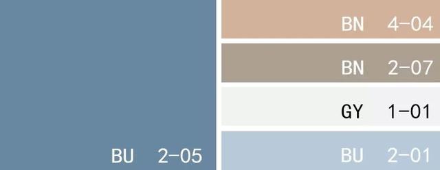 低饱和度,明度适中。蓝中带灰的色调沉静而柔和。可以作为背景色,也可以作为强调色存在。在布艺上,可以和灰白搭配使用。
