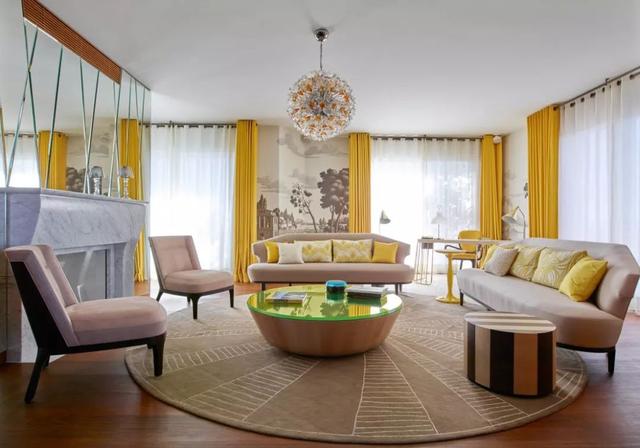 往往空间背景色可以选择亮白色、柔和蓝、晚霞色与曙光银。中性、浅色背景相对来说比较容易掌握,且没有季节性限制,你只要更换布艺即可。帝国黄作为布艺出现,和不同色系搭配可以带来不同效果。