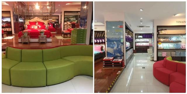 展厅超大,一排排各式各样的床上用品让人爱不释手,就像置身于一个精致床品的艺术博物馆,给人一种非常舒心的感觉。