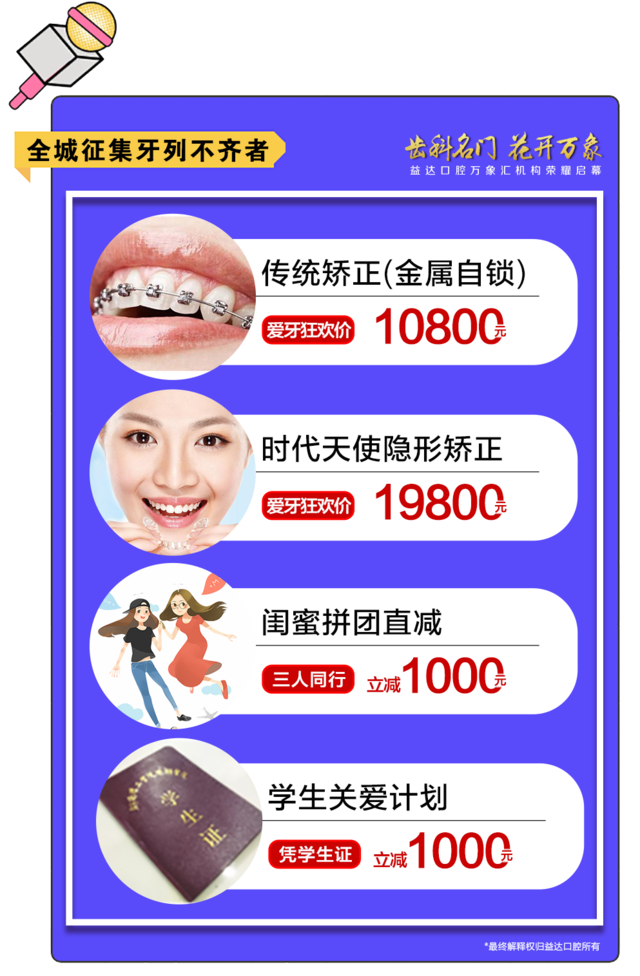上一期很多粉丝报名参加了益达口腔的公益援助种牙计划,省下了一大笔钱,纷纷感谢kb君的安利。现在益达口腔的公益援助种牙计划持续,有缺牙困扰的小伙伴们千万别再错过喽。