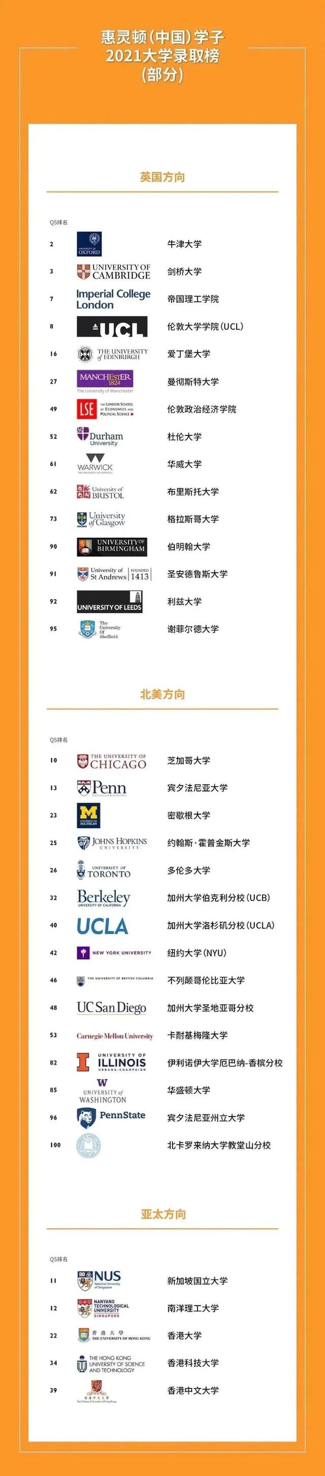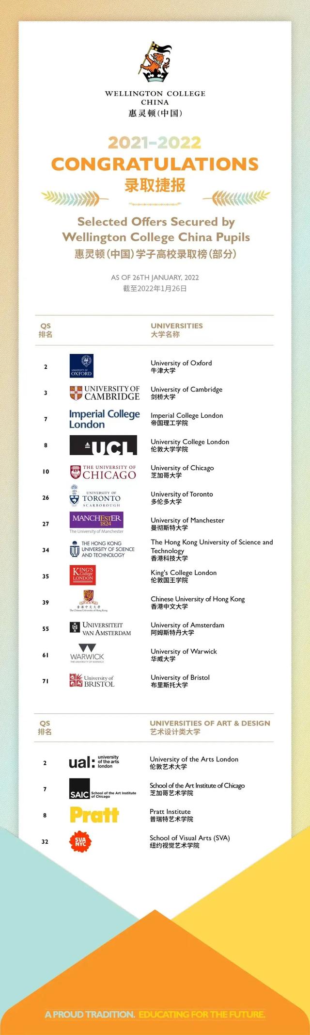 在今年的高校早申录取结果中,QS全球大学排行前十的顶尖院校里已有5所大学向惠灵顿(中国)学子递来了橄榄枝,其中包括牛津大学、剑桥大学、帝国理工学院、伦敦大学学院及芝加哥大学。