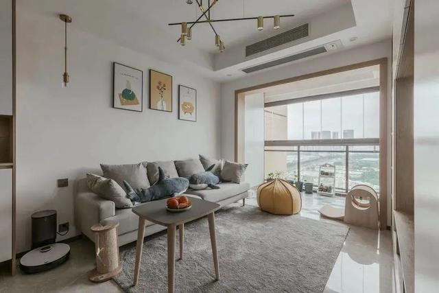 装修上没有做很大改动,将客厅阳台打通,同步在阳台定制储物柜,以提高居家收纳能力。除了主卧之外,其他房间都采用定制设计,既增加储物收纳,又提高空间利用率。