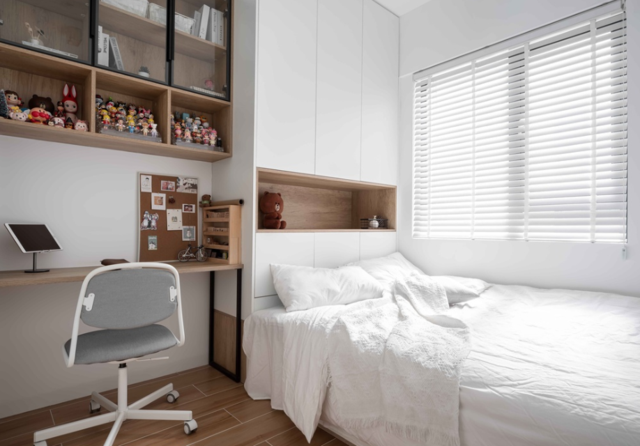 ▲在隔断方面,百叶窗很好的替代了窗帘,灵活调节室内光线。