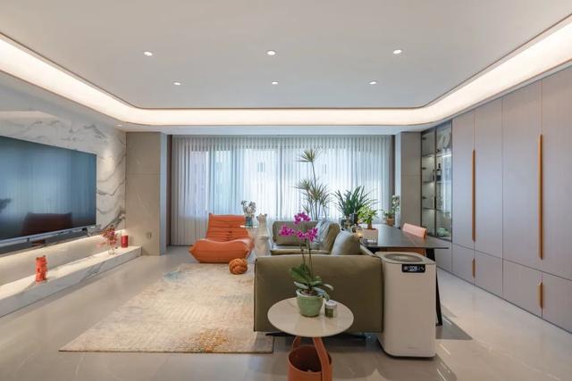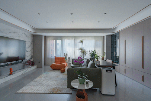 这是一套面积为120平米的房子,整个空间的设计,柔和中透着线性的美感,让人感觉特别的舒适、放松。