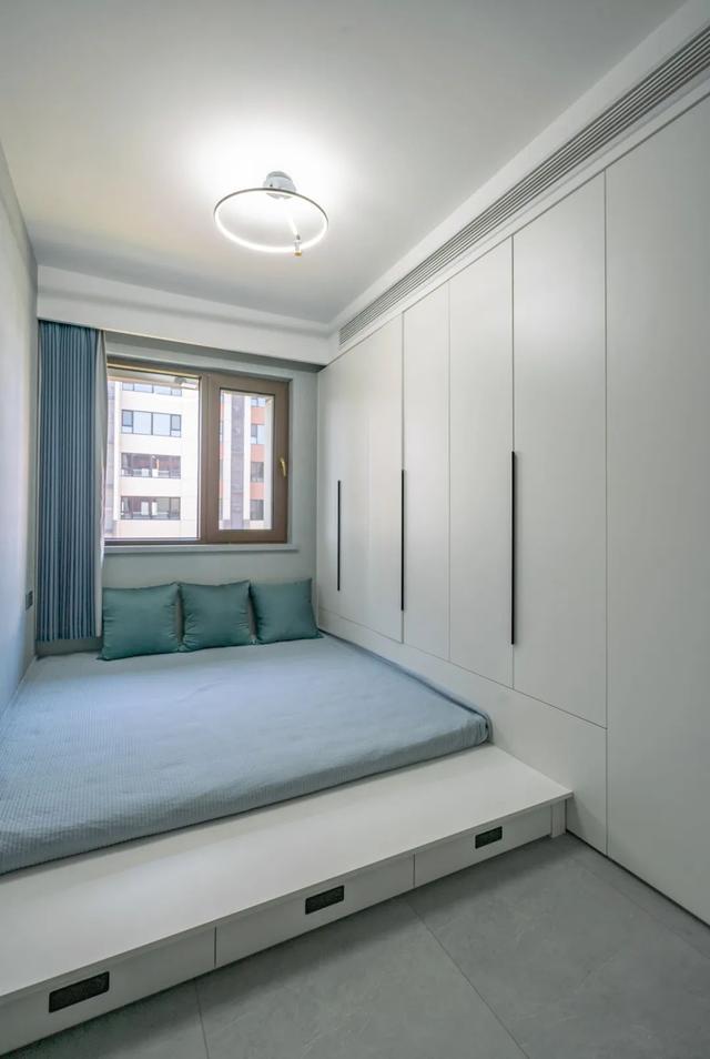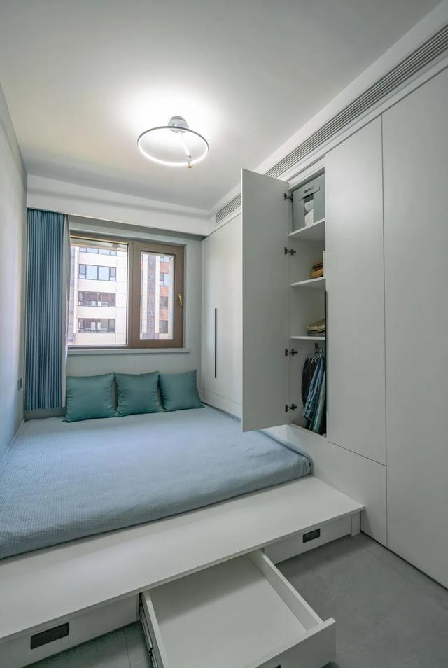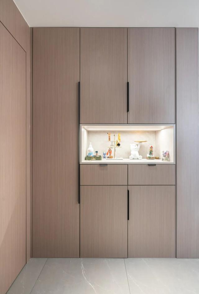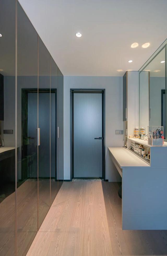 卧室与主卫之间的过道设计成一间拥有超大容量及梳妆台的衣帽间。