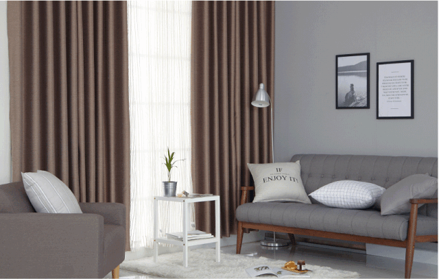 这时窗帘选择可以搭配一些暖深色调,例如茶褐色、咖啡棕色、橙色等,很有层次感,比较有人文艺术感。