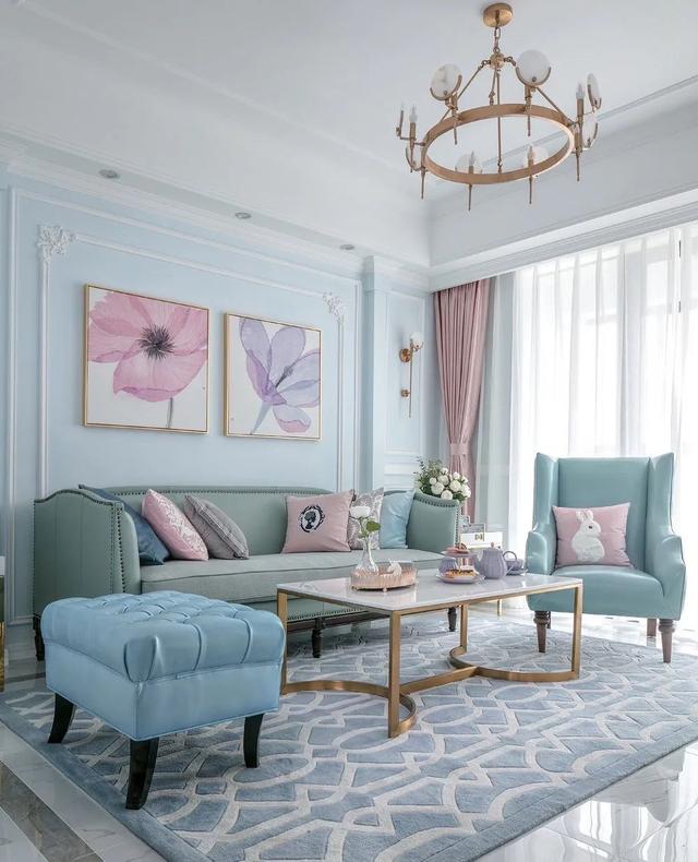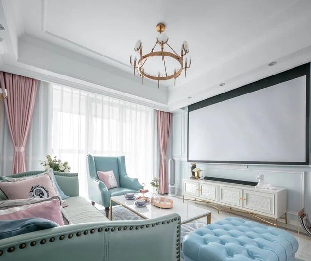 如果墙面做了果冻色系,例如天空蓝、柠檬黄、牛油果绿等,窗帘色彩搭配建议选择同样果冻色来搭配,会让整个空间更青春活力。