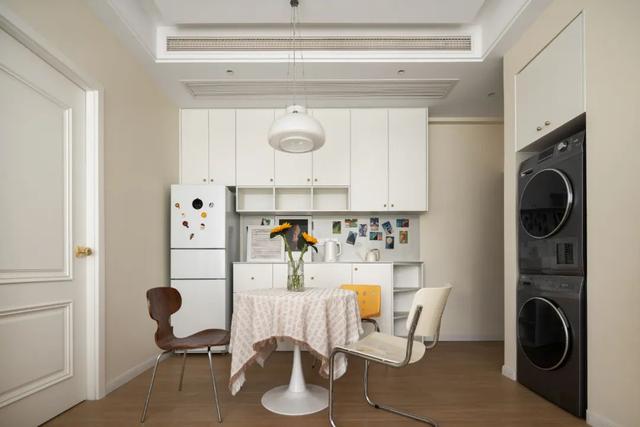 餐厅选择小小的圆餐桌,便满足夫妻二人的日常生活~
