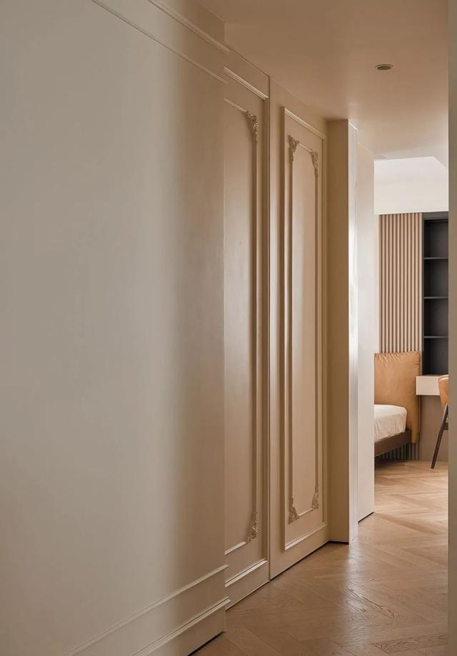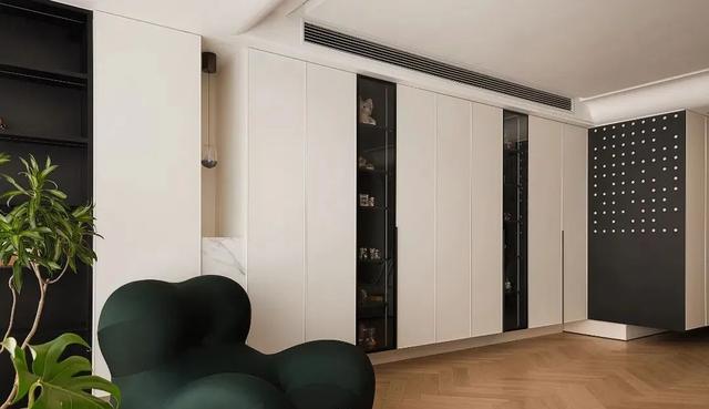 庞大的收纳体量极易使空间变得厚重、逼仄,却在设计师的手里无声隐入空间背景板,简洁又不失细节把握,是让屋子经久耐看的关键。