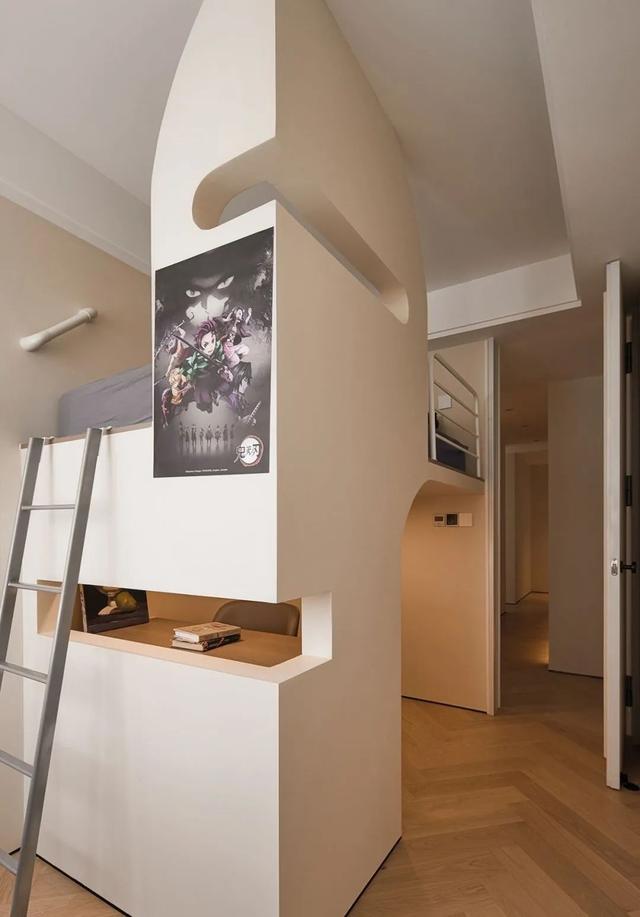 除了日常写作业以外,小朋友还有画画的爱好,利用上床下书桌的形式,既增加了趣味性。