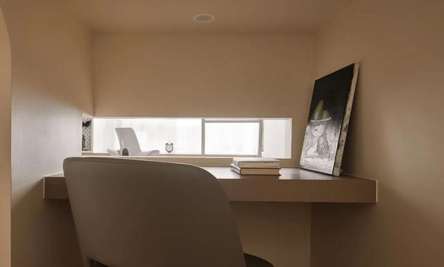 主卧利用飘窗抬高,做了一个L型的台面,兼具书桌及梳妆台功能。