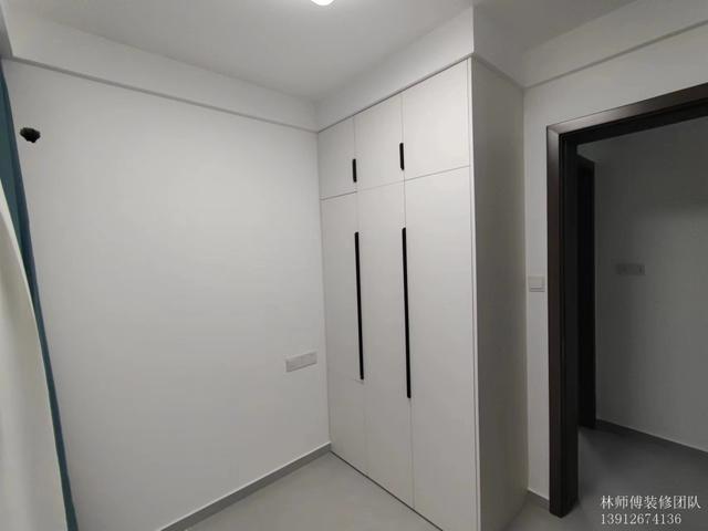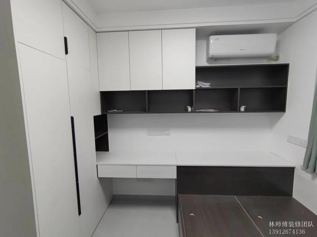 小房间的实用性比较强,属于一房多用,衣柜+书桌+榻榻米,收纳满分。