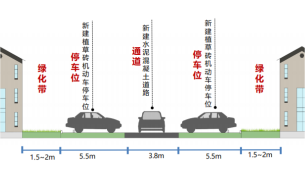 此次改造,利用楼宇间绿化带新建植草砖停车位与非机动车充电棚,可新增机动车停车位共计99个,单挑式非机动车充电棚2处。改造完成后,目前小区停车位达到476个。