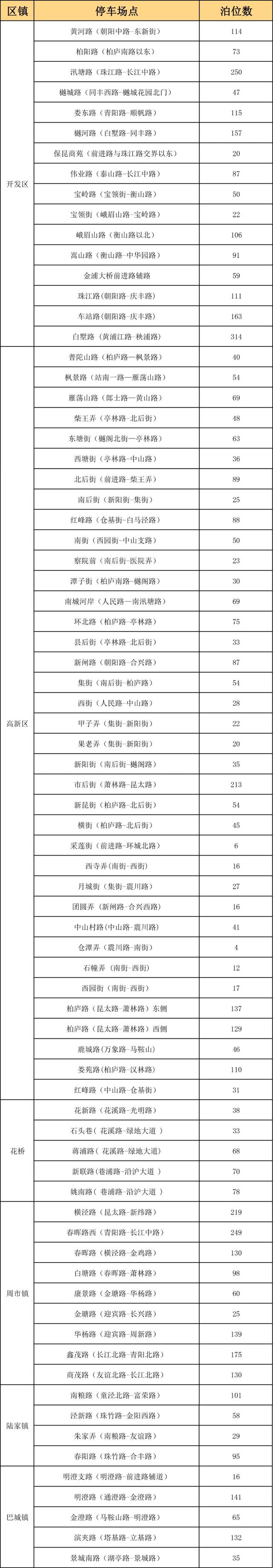 免费停车场(点)明细如下