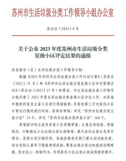 苏州市生活垃圾分类五星小区!花都艺墅入选