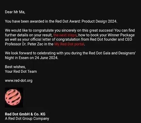 据悉,红点设计奖是全球著名的设计奖项之一,与德国IF设计奖、美国IDEA设计奖并称为世界三大设计奖。该奖项自1955年设立以来,始终秉持“寻找优秀设计”的理念,被誉为设计奖中的“奥斯卡”。