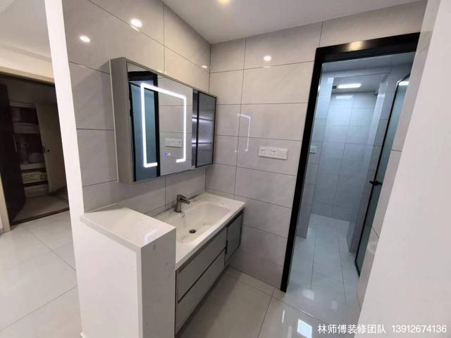 因为家里只有一个洗手间,因此在设计时选择了三分离设计,让洗漱、如厕、洗澡互相独立,每个空间能同时使用,既节省时间又非常便捷,不会出现争抢的情况。