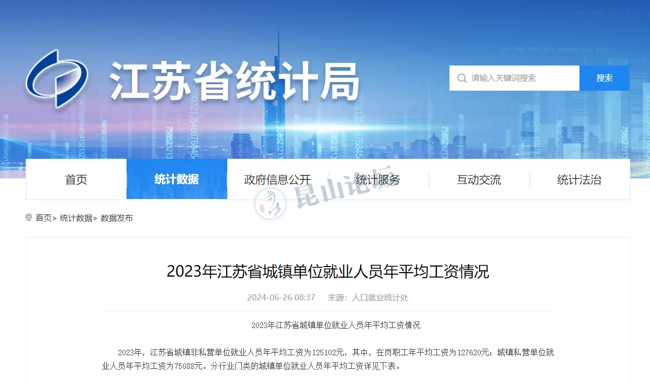 2023年江苏省城镇非私营单位就业人员年平均工资为125102元其中在岗职工年平均工资为127620元城镇私营单位就业人员年平均工资为75088元
