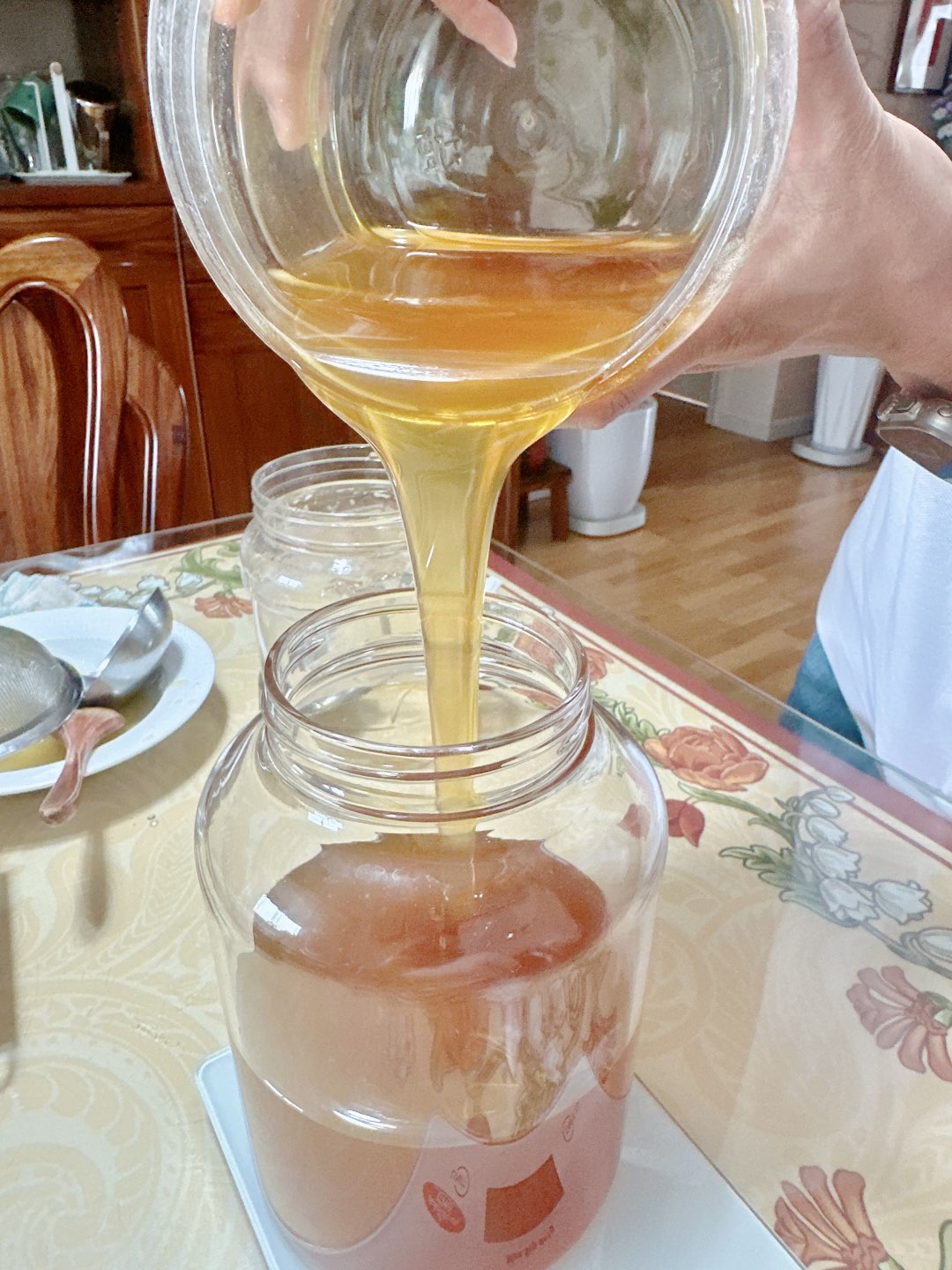 和娃爸午睡后开始分装大姑姐家和婆家带回来的蜂蜜,大姑姐家带了5桶蜂蜜回来,分装出29斤给她出售掉,婆家带回来的蜂蜜就是我们自己和亲朋好友分享了。