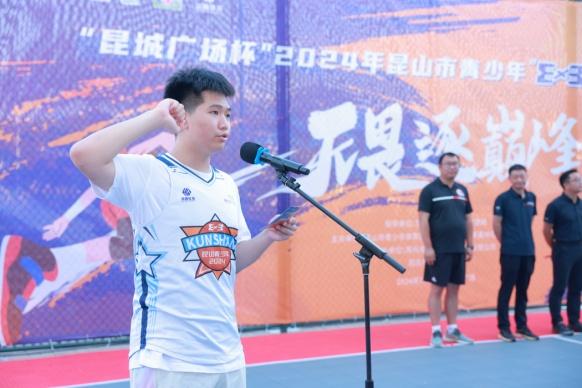 运动员、裁判员宣誓后,李校长宣布“昆城广场杯”2024年昆山市青少年“三对三”街头篮球赛开幕。本赛事于7月20日至8月25日展开激烈比拼,篮球少年们将战胜酷暑,逐梦前行、迎“篮”而上!