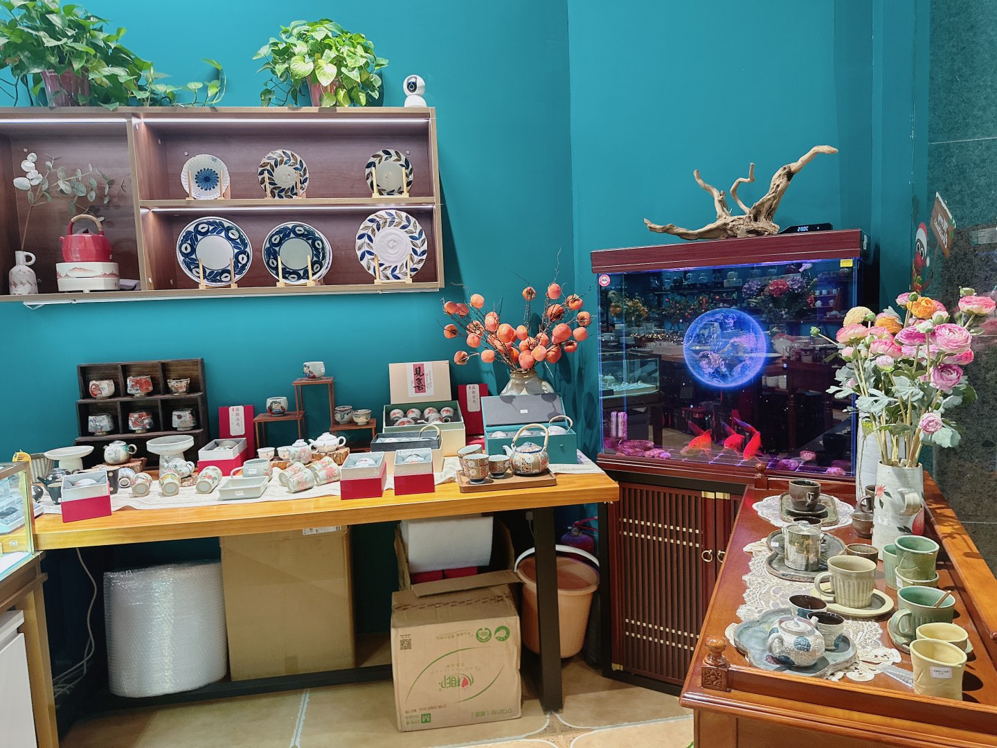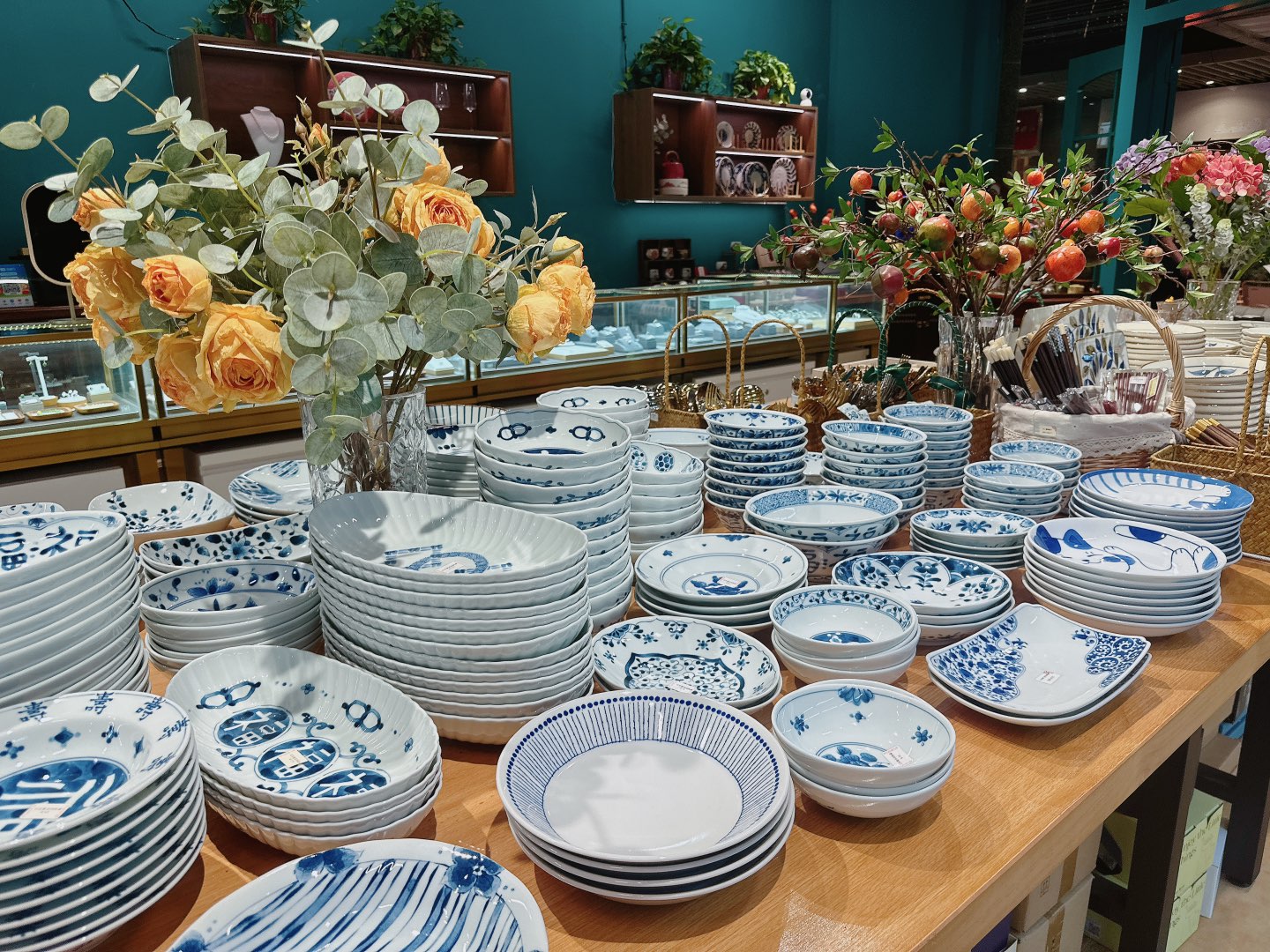 我说你家餐具好多啊!店家说日式餐具和景德镇餐具为主,看着都想入,想想口袋里的米和家里也没地方放,拔草了。
