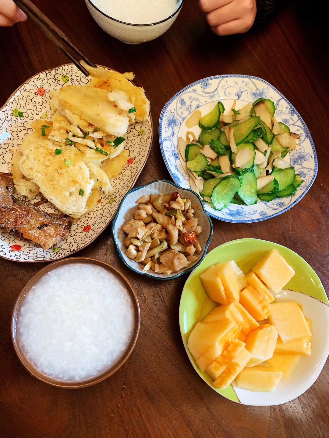 朋友圈有这么一张早餐图片:小米粥(稀粥),油条,萝卜干,水煮鸡蛋。