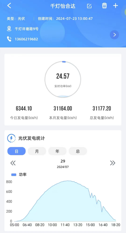 该光伏电站主要设备包含了光伏组件、逆变器、并网箱等,共铺设采用单晶硅550Wp光伏板1818块,采用“自发自用、余电上网”的模式,所发电量85%由企业自主消纳,单日发电最高可达到6344度,每年平均发电量预计可达100万度,每年可减少碳排放量778吨。按日夜用电全年统算可满足企业30%以上的用电,在为企业生产提供绿色能源的基础上,预计每年可节省电费超50万元。