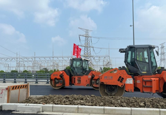 因此,尽管天气炎热,工人们还是坚守一线努力工作,为的就是让这条连接工业园区和昆山的道路能够早日通车。