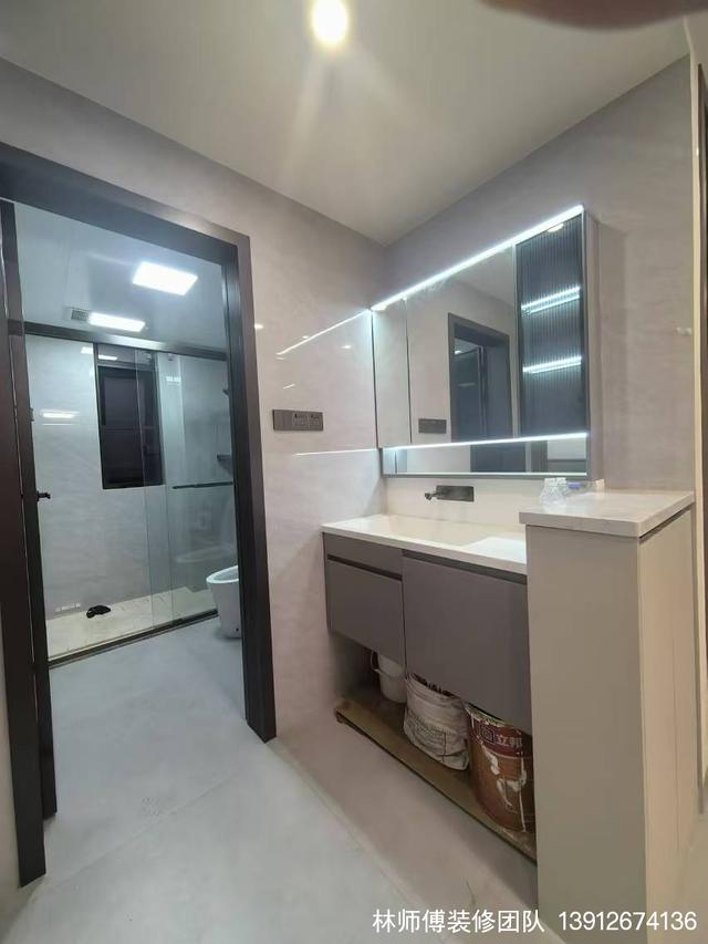 家里的两个卫生间都做了干湿分离,客卫在干湿分离的基础上,又将洗手池外移,独立出一个单独的洗手区,不仅大大提高了利用率,也营造出了更加舒适的卫浴环境。长方形的镜面柜,收纳充足,灯带设计,让空间瞬间清亮起来。