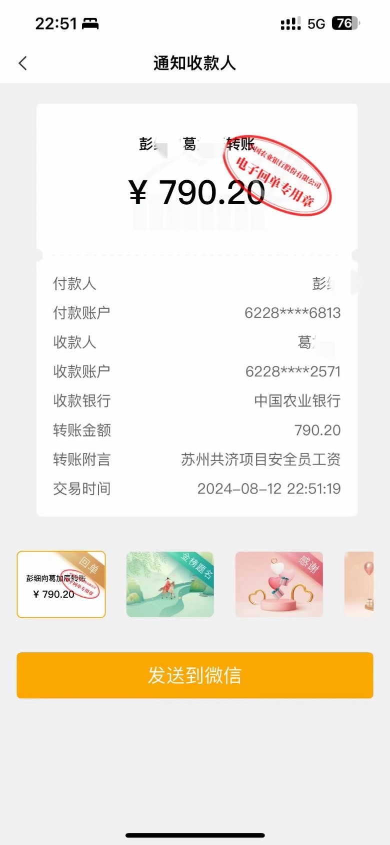 我要投诉,他们用私人账号给我转了790.2元。备注:工资。