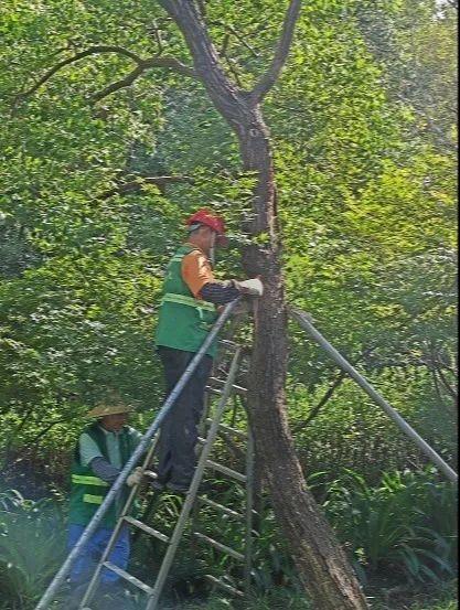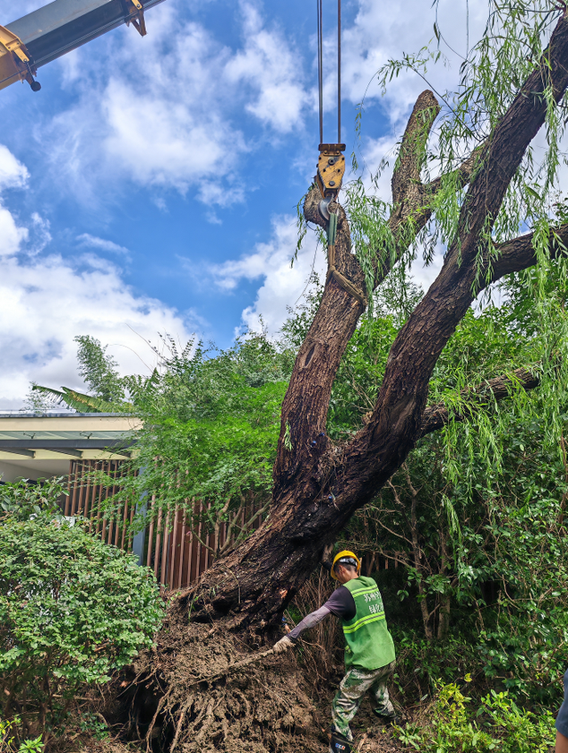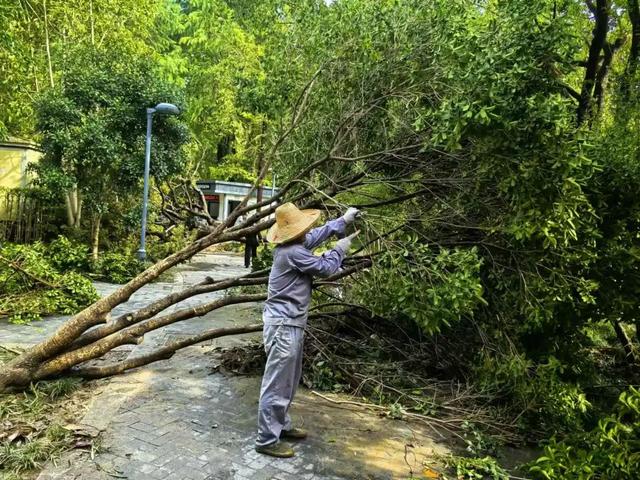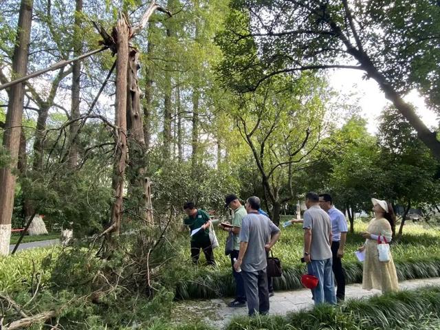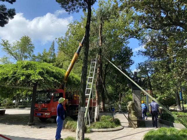 台风过后景区立即采取行动,全力投入到应急抢险和开园准备工作中。已完成修剪枝叶畅通园内道路、及时恢复水电保障、修复受损设施设备、清理积涝区域等工作,目前正进行绿地内倒伏树木处置和扶正加固工作。针对受损的古树名木,将协同绿化办、专家及公园管理中心进行现场作业指导。因山体部分石阶及绿植受到一定损坏,为消除安全隐患,计划对山体进行临时封闭处理。