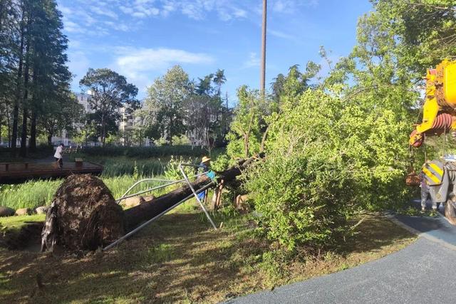 针对受损情况,公园及时制定恢复作业分工,动员组织人手进行抢修等应急应对处置。目前已恢复园内供电保障,处理倒伏树木80余棵,完成园内主路的疏通和保洁等。接下来将对主路沿线的倒伏树木进行分类清除、修剪加固等作业,并开展设施检查维修等后续工作。