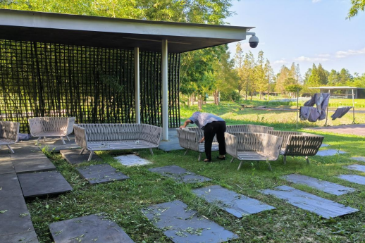 “贝碧嘉”重创农场,造成岛内农田被淹,大棚倾斜受损,多棵大树倾倒破坏。在确认受灾受损情况后,悦丰岛及时组织力量进行灾后恢复,各营业空间第一时间进行排积水、通水电,整理整洁、晾晒物资等。联系大棚施工单位商讨大棚修整事宜,同时陆续修复完善设备设施,清理农田周围倒斜的竹林、小树等。