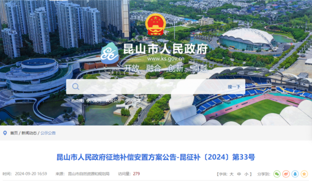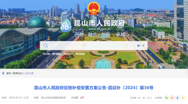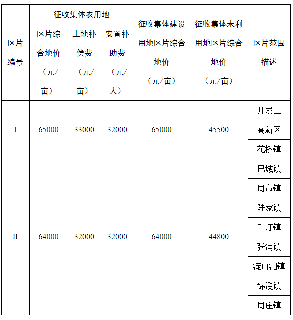按《市政府关于重新公布昆山市征地区片综合地价标准的通知》(昆政规〔2024]1号)和《昆山市人民政府办公室抄告单》(昆政办抄〔2024]20号)规定的标准执行。