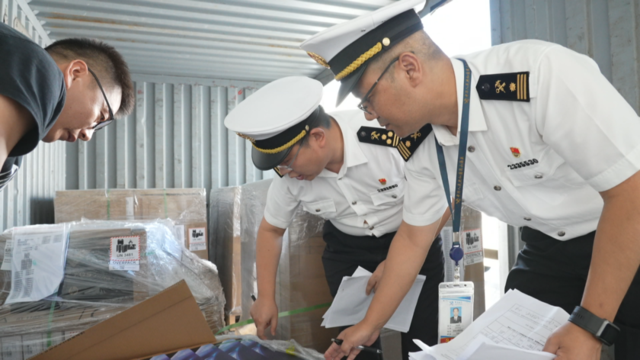 一早,小昆在昆山海关特殊监管区查验平台内看到,工作人员正在仔细查验转关货物的申请和报检单据。