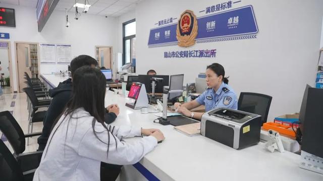 在长江派出所政务服务窗口,徐丹与同事们正在指导市民办理户籍业务。在她耐心帮助下,市民李先生很快就完成了身份证办理。