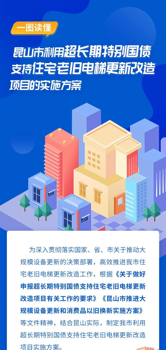 近日,《昆山市利用超长期特别国债支持住宅老旧电梯更新改造项目的实施方案》印发实施。11月21日,昆山高新区叶荷社区、清水港社区与通力电梯、物业完成了首批住宅老旧电梯更新改造签约工作,将为凯迪城小区、满庭芳花园小区更换新电梯,这是昆山纳入超长期国债支持住宅老旧电梯更新改造的首批启动项目。