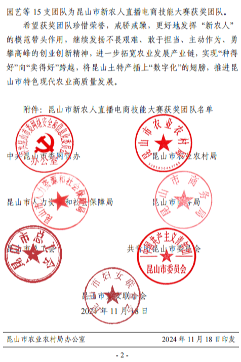 近日,2024年昆山市新农人直播电商技能大赛获奖名单公布,张浦镇4支参赛团队表现优异。其中,土人园艺团队(昆山土人园艺有限公司)获一等奖,匹格村落(昆山思尔腾食品有限公司)、苏城花园(苏州英迈森园艺科技有限公司)、金鸿花卉(苏州金春鸿园林绿化有限责任公司)团队获三等奖,获奖率100%。