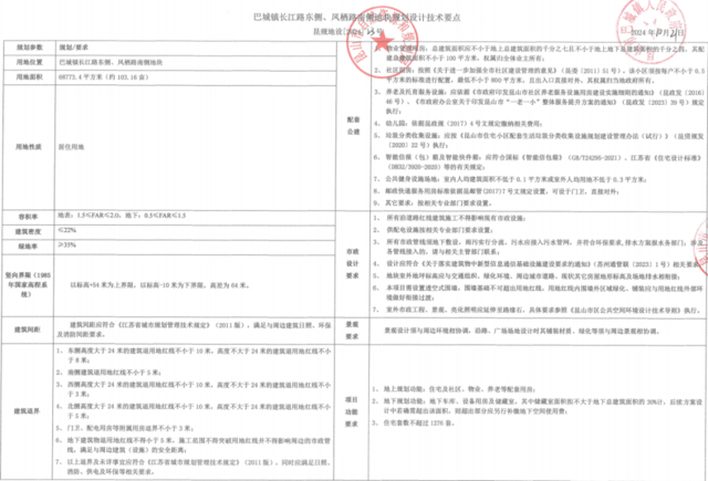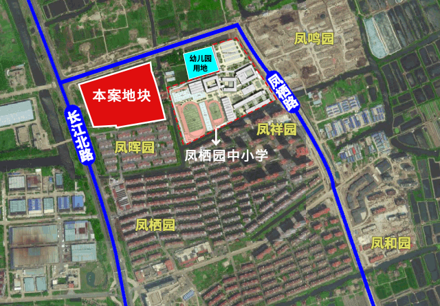 地块地处昆山巴城镇东北部门户位置,位于长江路东侧、凤栖路南侧,右侧邻近九年一贯制学校——凤栖园中小学,规模为小学8轨48班、初中8轨24班,预计增加小学学位2160个,增加初中学位1200个。