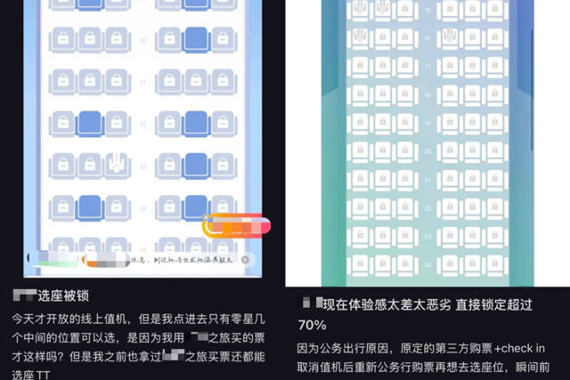 △在社交平台上,多家航空公司被指大面积“锁座”