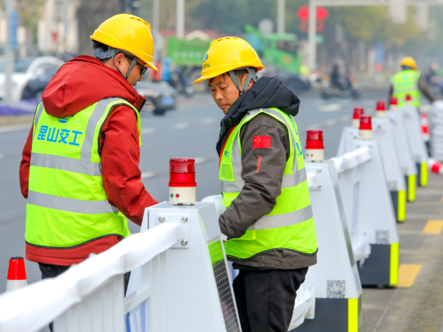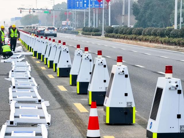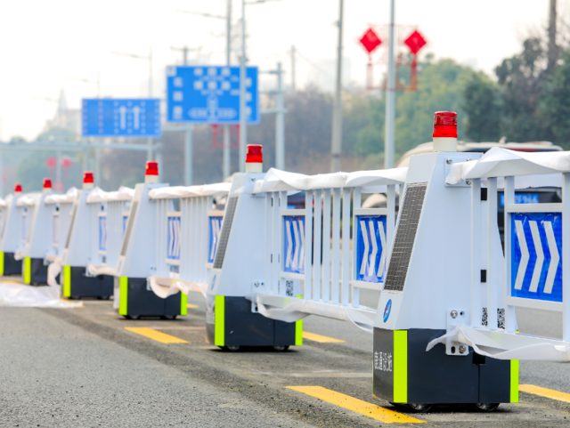 此次工程运用机器人护栏式潮汐车道技术,属于昆山首例。该系统由智能控制中心、机器人移动护栏等部分组成。智能控制中心根据实时交通流量,精准指挥机器人在特定时段移动护栏,快速切换车道方向,灵活分配道路资源,大大提高了交通通行效率,有效缓解拥堵状况。