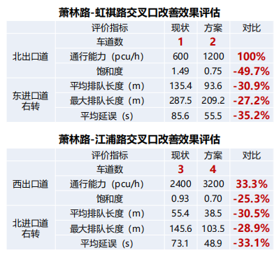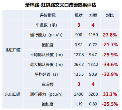萧林路共更换2处分车道指示牌,增设8处提示牌,安装300米潮汐车道隔离栏,得以清晰辨明车道变化。同时,虹祺路进行多方面改造,进行拼宽5米、硬化750平米,迁移各类交通标识与设施,迁改公共自行车点并保护管道,增设4处提示牌与90米隔离栏,保障与萧林路潮汐车道衔接顺畅。